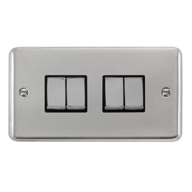 Curved Polished Chrome 10AX Ingot 4 Gang 2 Way Plate Switch - Black Trim