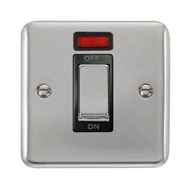 Curved Polished Chrome 45A Ingot 1 Gang DP Switch With Neon - Black Trim