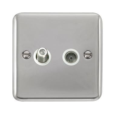 Curved Polished Chrome Non-Isolated Satellite & Non-Isolated Coaxial Outlet - White Trim