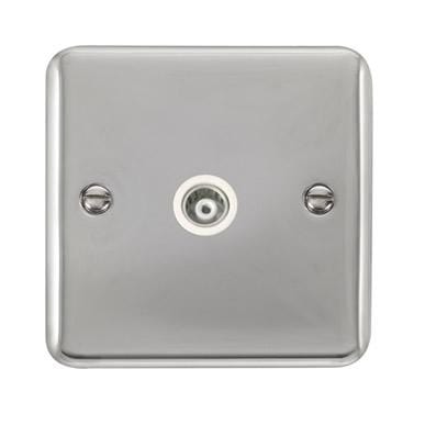 Curved Polished Chrome Single Isolated Coaxial Outlet - White Trim