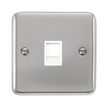 Curved Polished Chrome Single RJ11 (Irish/US) Outlet - White Trim