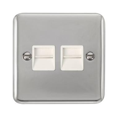 Curved Polished Chrome Twin Telephone Outlet - Master - White Trim