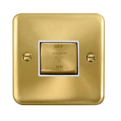 Curved Satin Brass 10A Ingot 3 Pole Fan Isolation Plate Switch - White Trim