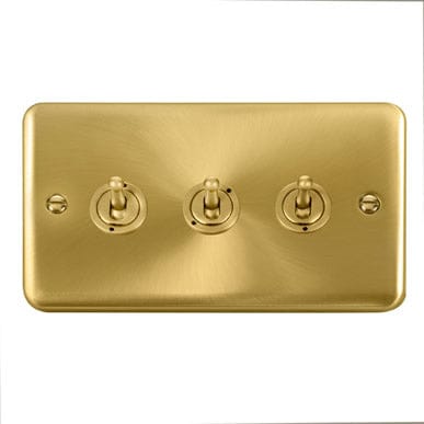 Curved Satin Brass 10AX 3 Gang 2 Way Toggle Light Switch