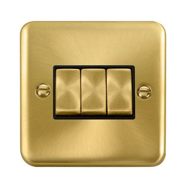 Curved Satin Brass 10AX Ingot 3 Gang 2 Way Light Switch - Black Trim