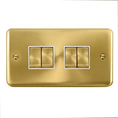 Curved Satin Brass 10AX Ingot 4 Gang 2 Way Light Switch - White Trim