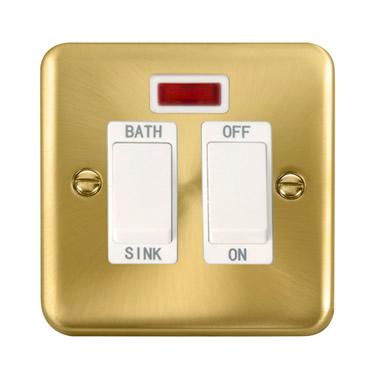 Curved Satin Brass 20A DP Sink/Bath Switch With Neon - White Trim
