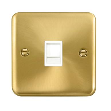 Curved Satin Brass Single RJ11 (Irish/US) Outlet - White Trim