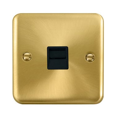 Curved Satin Brass Single Telephone Outlet - Secondary - Black Trim
