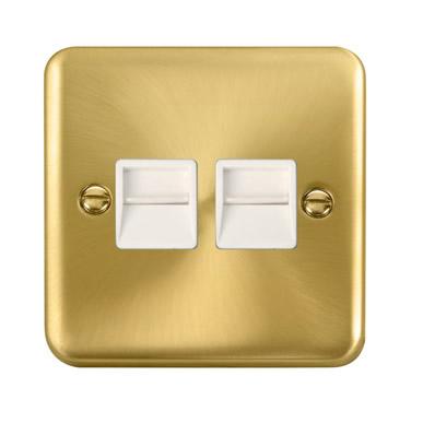 Curved Satin Brass Twin Telephone Outlet - Secondary - White Trim