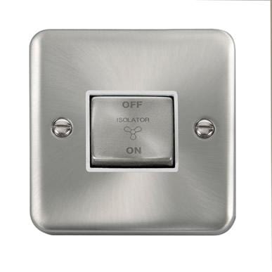 Curved Satin Chrome 10A Ingot 3 Pole Fan Isolation Plate Switch - White Trim