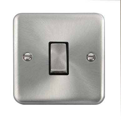 Curved Satin Chrome 10AX Ingot 1 Gang 2 Way Plate Switch - Black Trim
