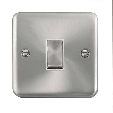 Curved Satin Chrome 10AX Ingot 1 Gang 2 Way Plate Switch - White Trim