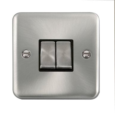 Curved Satin Chrome 10AX Ingot 2 Gang 2 Way Plate Switch - Black Trim