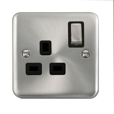 Curved Satin Chrome 13A Ingot 1 Gang DP Switched Socket - Black Trim