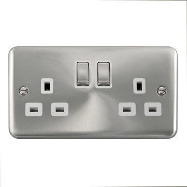 Curved Satin Chrome 13A Ingot 2 Gang DP Switched Socket - White Trim