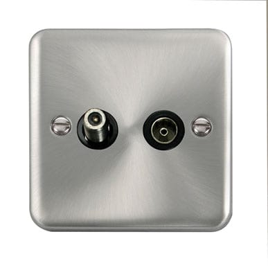 Curved Satin Chrome Non-Isolated Satellite & Non-Isolated Coaxial Outlet - Black Trim