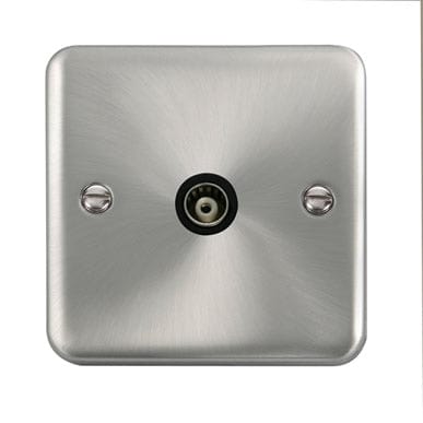 Curved Satin Chrome Single Isolated Coaxial Outlet - Black Trim