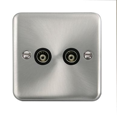 Curved Satin Chrome Twin Isolated Coaxial Outlet - Black Trim