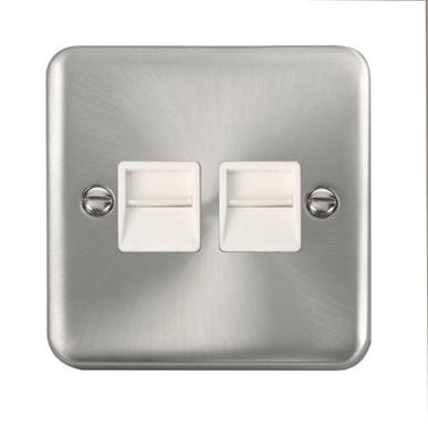 Curved Satin Chrome Twin Telephone Outlet - Secondary - White Trim