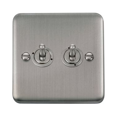Curved Stainless Steel 10AX 2 Gang 2 Way Toggle Switch - Black Trim