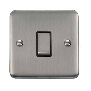Curved Stainless Steel 10AX Ingot 1 Gang Intermediate Plate Switch - Black Trim