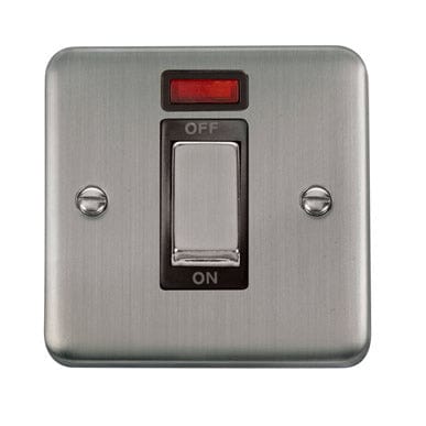Curved Stainless Steel 45A Ingot 1 Gang DP Switch With Neon - Black Trim