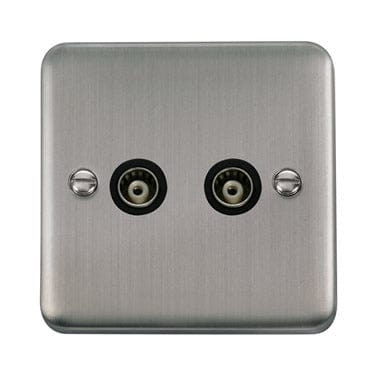 Curved Stainless Steel Twin Isolated Coaxial Outlet - Black Trim