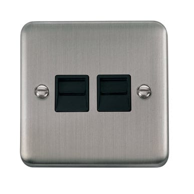 Curved Stainless Steel Twin Telephone Outlet - Secondary - Black Trim