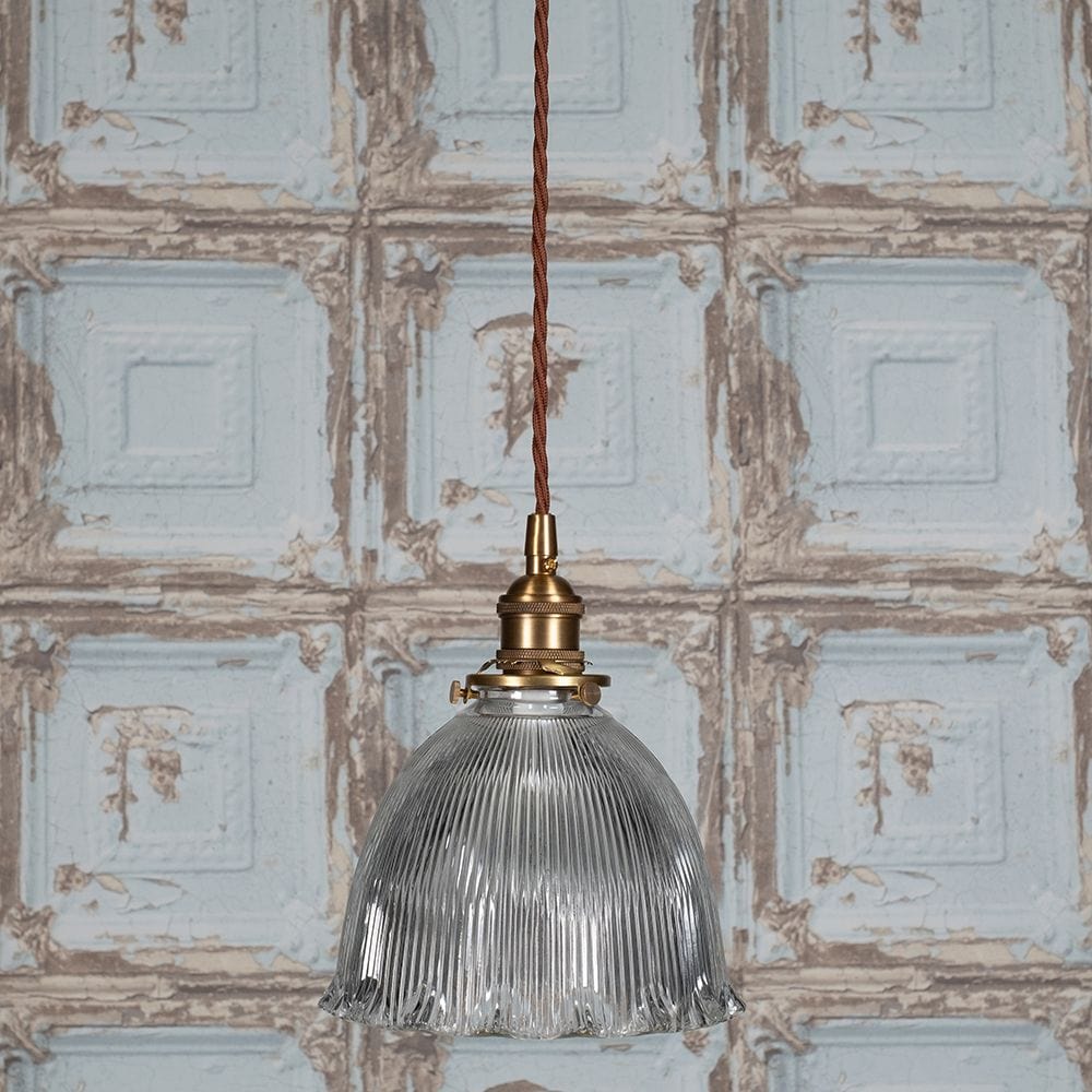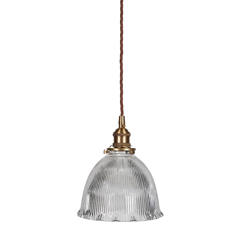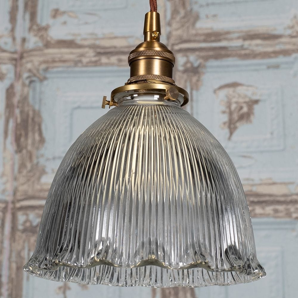 This beautiful, early 20th century inspired pendant light features a deeply cut, prismatic, dome shaped shade with scalloped edge. The D'Arblay scalloped prismatic glass dome provides a combination of uplight and downlight to illuminate an interior without creating shadow or glare.