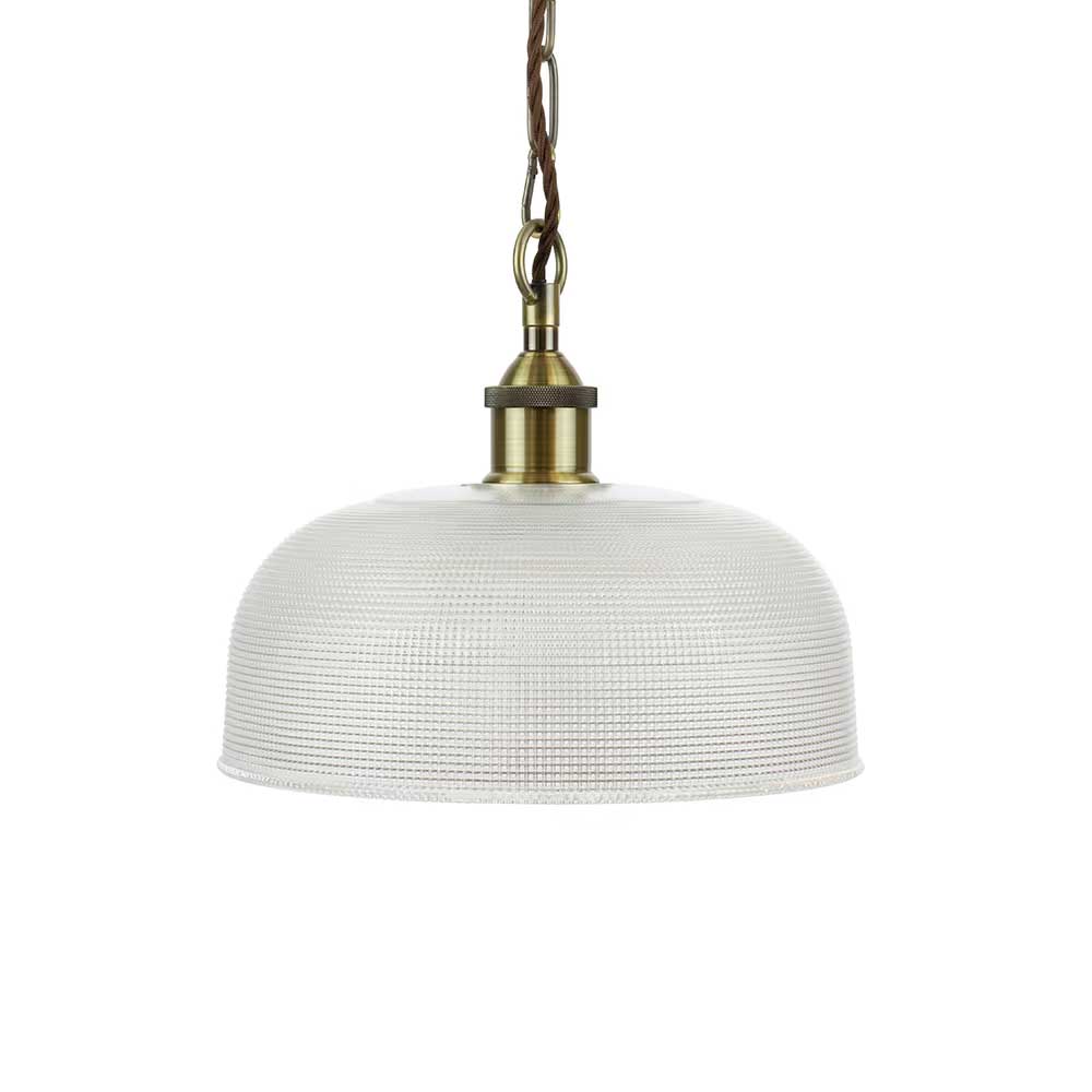 Du Maurier Prismatic Stepped Dome Glass Pendant Light - Antique Brass