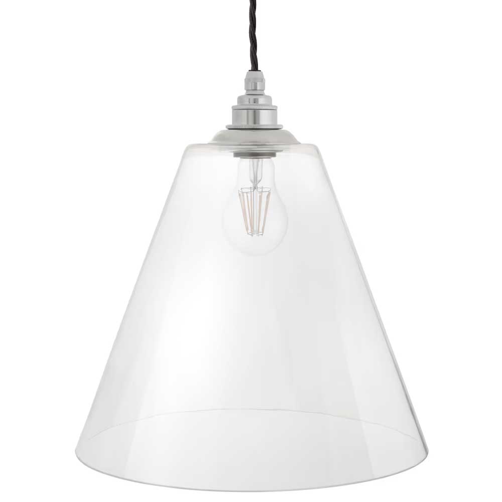 The Forster glass cone pendant is a simply stunning classically shaped shade that is functionally beautiful, complementing a traditional styled space as a stunning single light, a matching pair, or an eye-catching trio to truly complement a kitchen island or bar.