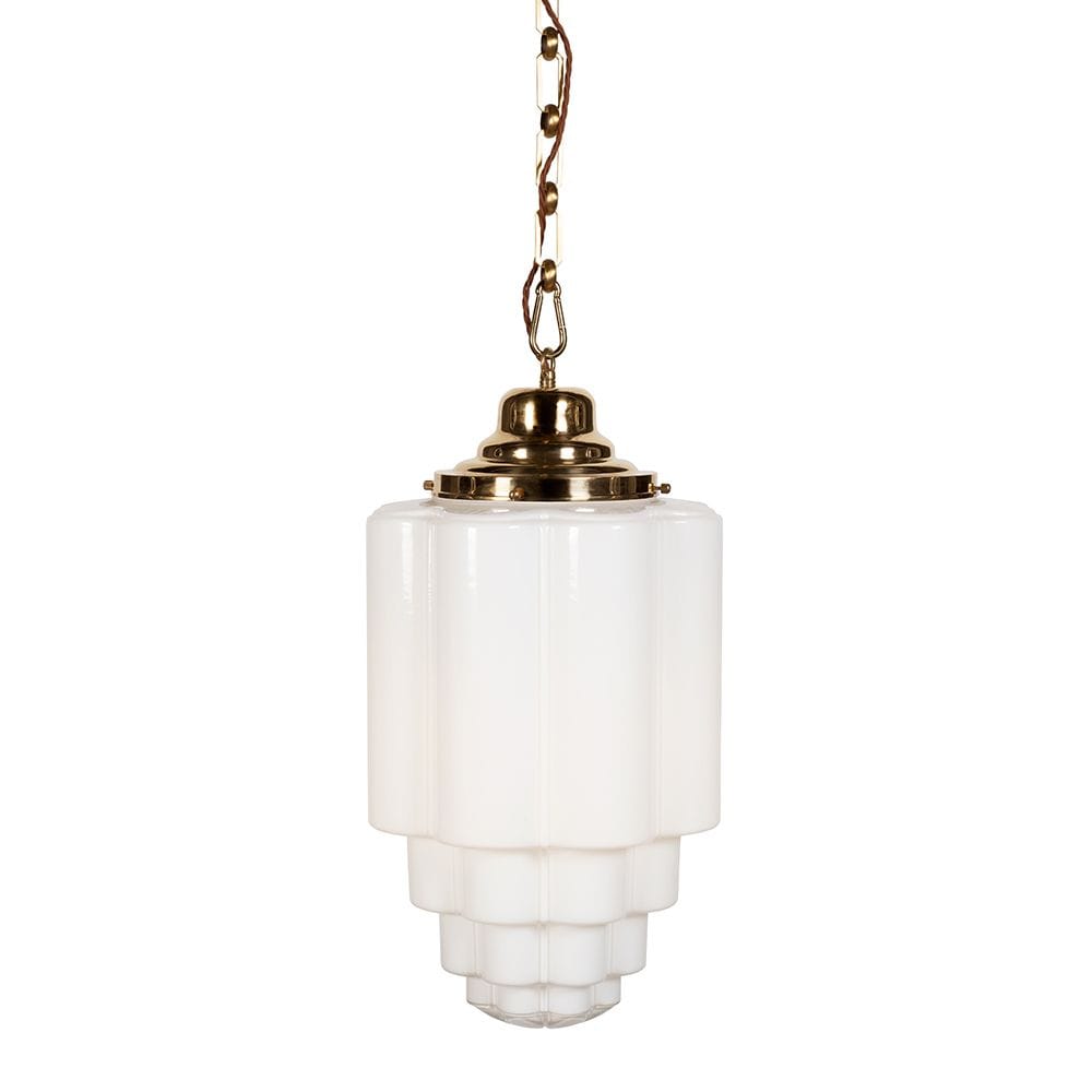 Meticulously crafted and modelled on a rare 1900's vintage moulding, the striking Glasshouse pendant is simply breath taking. The quality thick glass, antique in appearance is available in a choice of clear glass to cast optimum light output and aged opaque glass to create a softer, inviting ambience. Adorned with an elegantly designed, solid brass chain and cap, this iconic pendant is available in polished brass, lacquered aged brass or polished Nickel finishes. Whilst retaining its vintage authenticity, the Glasshouse pendant has a sophisticated and time-less elegance to grace any stylish interior.