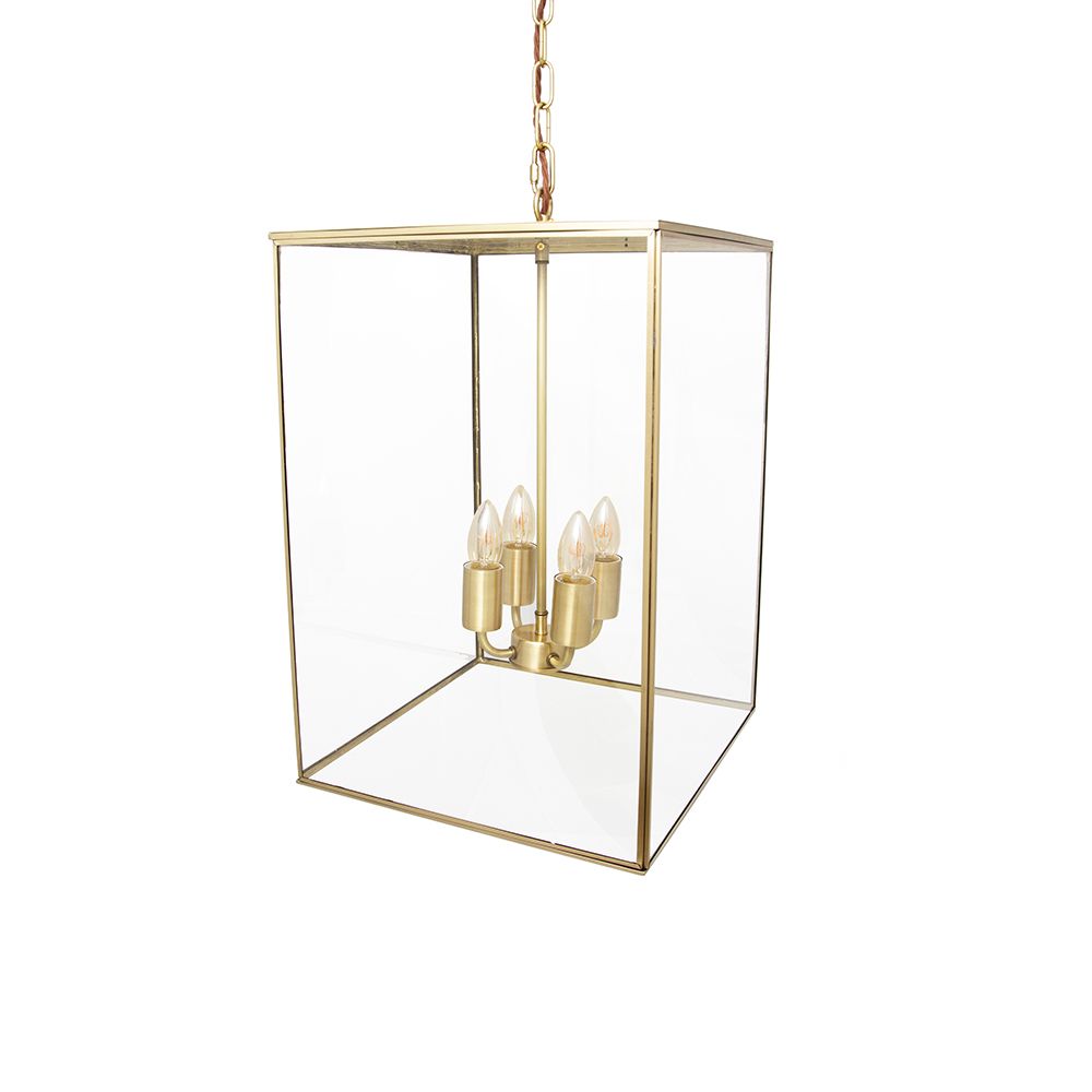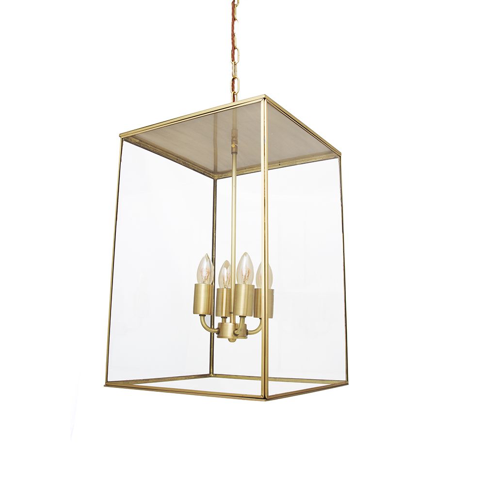 Constructed from solid brass and clear glass, this medium pendant features an enclosed top that elegantly showcases the rich brass finish.
