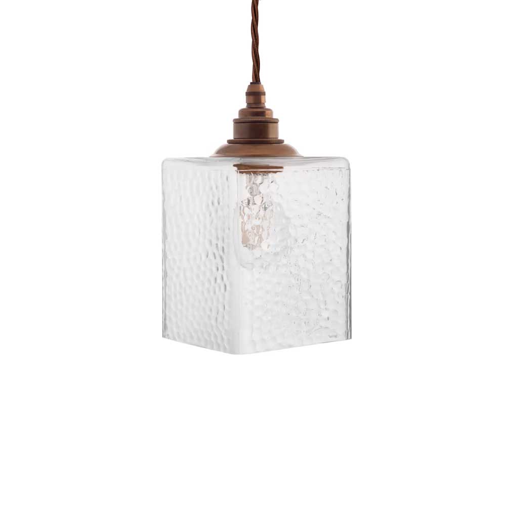 Montagu Cuboid Dappled Glass Pendant Light - Old English Brass