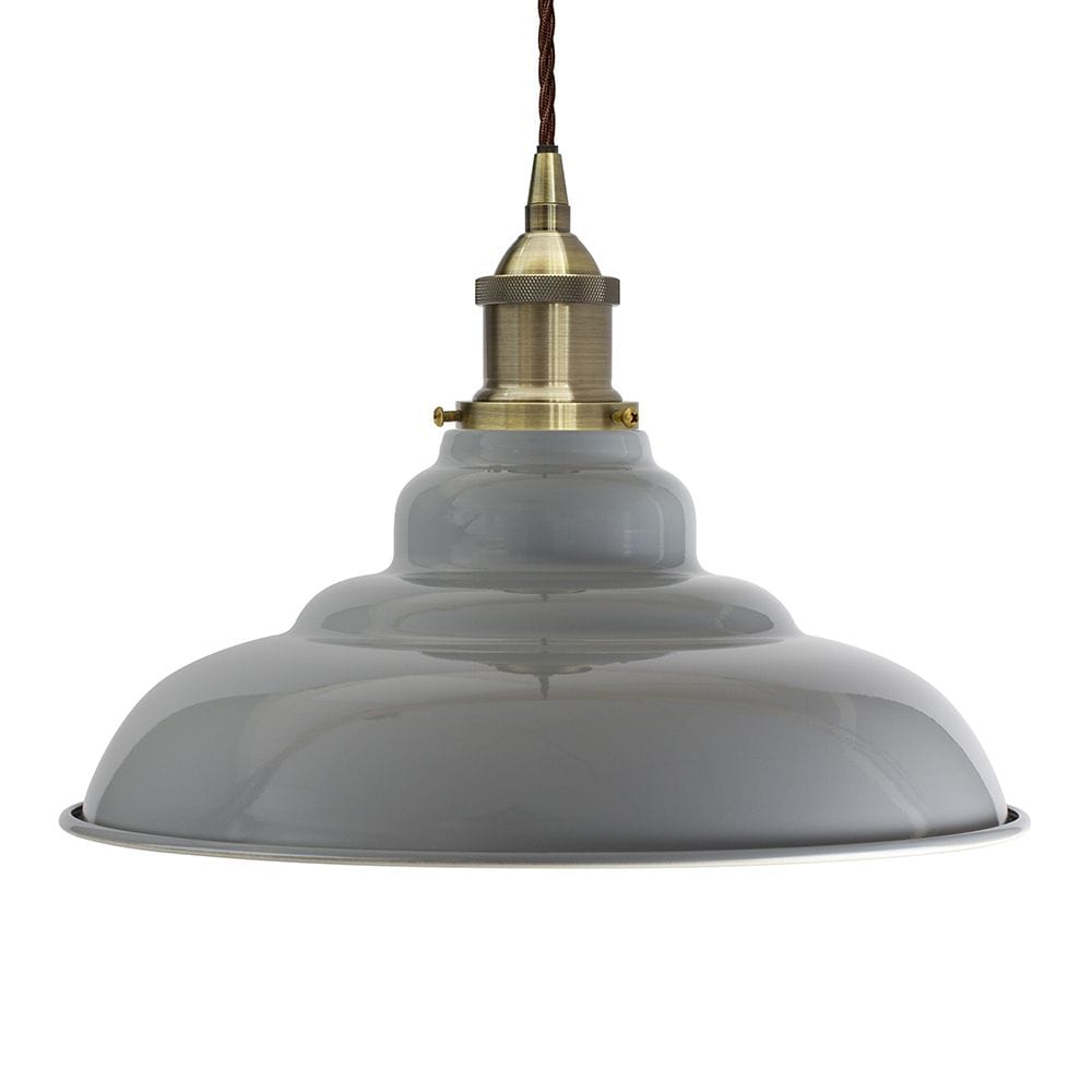 French Grey St Edmund's Painted Pendant Light - Antique Brass Lamp Holder & Ceiling Rose