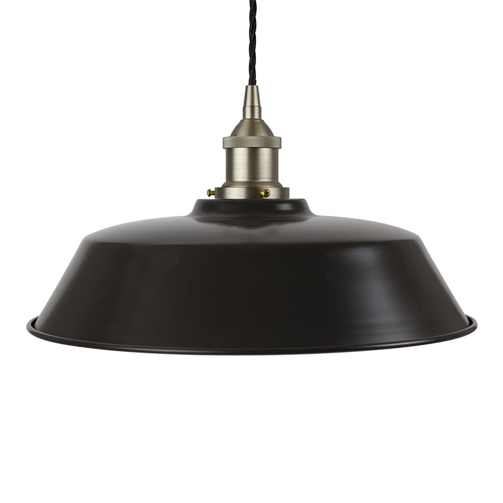 Matt Black Chancery Painted Pendant Light - Brushed Chrome Lamp Holder & Ceiling Rose