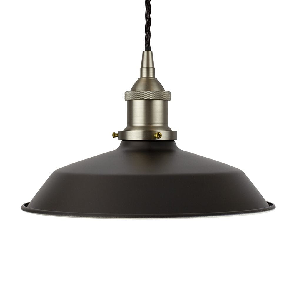 Matt Black Small Trinity Metal Painted Pendant Light - Brushed Chrome Lamp Holder & Ceiling Rose