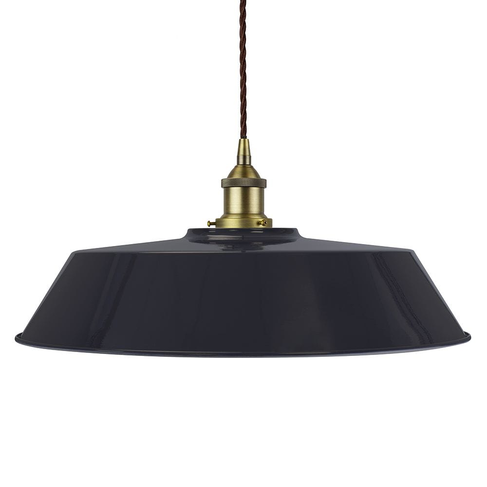 Navy Blue Large Chancery Painted Pendant Light - Matt Antique Brass Lamp Holder & Ceiling Rose