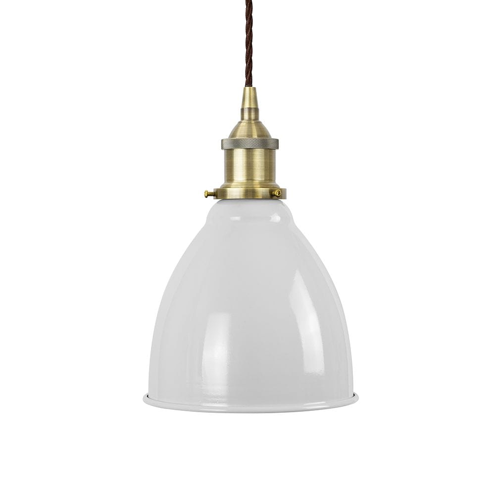 Pale Grey Classic Painted Pendant Light - Antique Brass Lamp Holder & Ceiling Rose