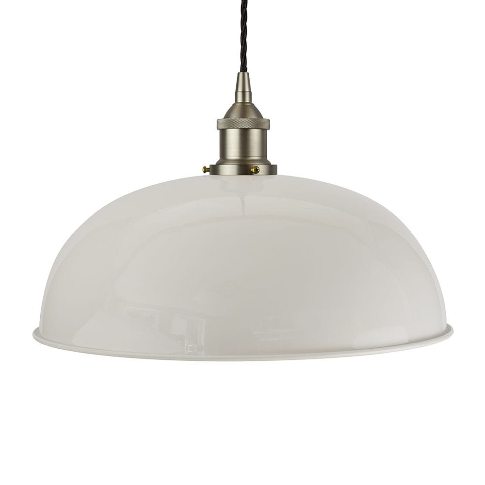 The majestic Worcester pendant brings refined gravitas to any interior setting. It's beautifully curved enamel dome casts light downwards to perfectly illuminate the space below, ideal for both task and decorative lighting. The hand painted pale grey finish is exquisitely subtle and is paired with a choice of bulbholder including chrome, brass, gold, copper, nickel and black nickel. The Worcester has the presence to hang alone and also creates a sensational style statement when hung in multiples above a kitchen island or dining table. Add a fitting bezel for a more industrial feel or remove it to up the elegance.