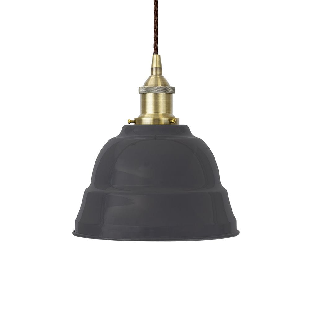 Slate Grey Lincoln Painted Pendant Light - Antique Brass Lamp Holder & Ceiling Rose
