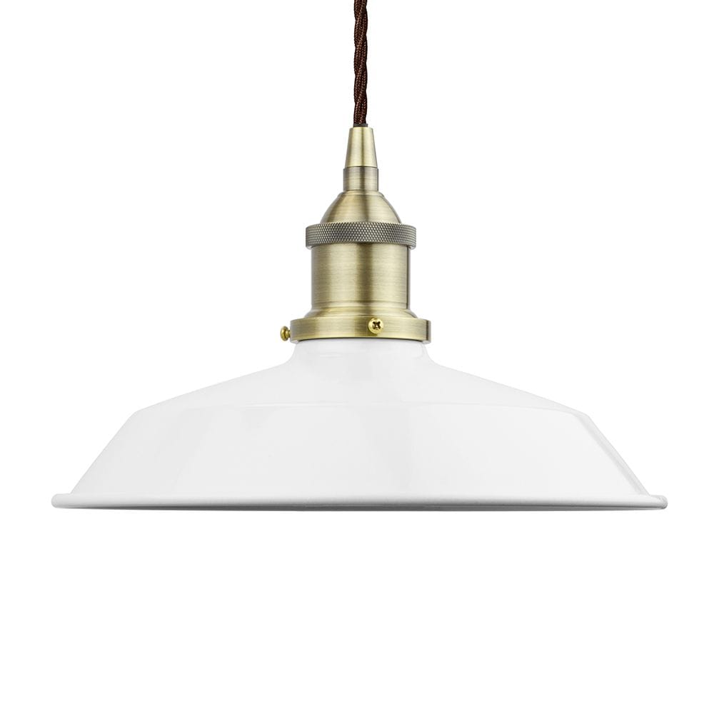 White Small Trinity Metal Painted Pendant Light - Antique Brass Lamp Holder & Ceiling Rose