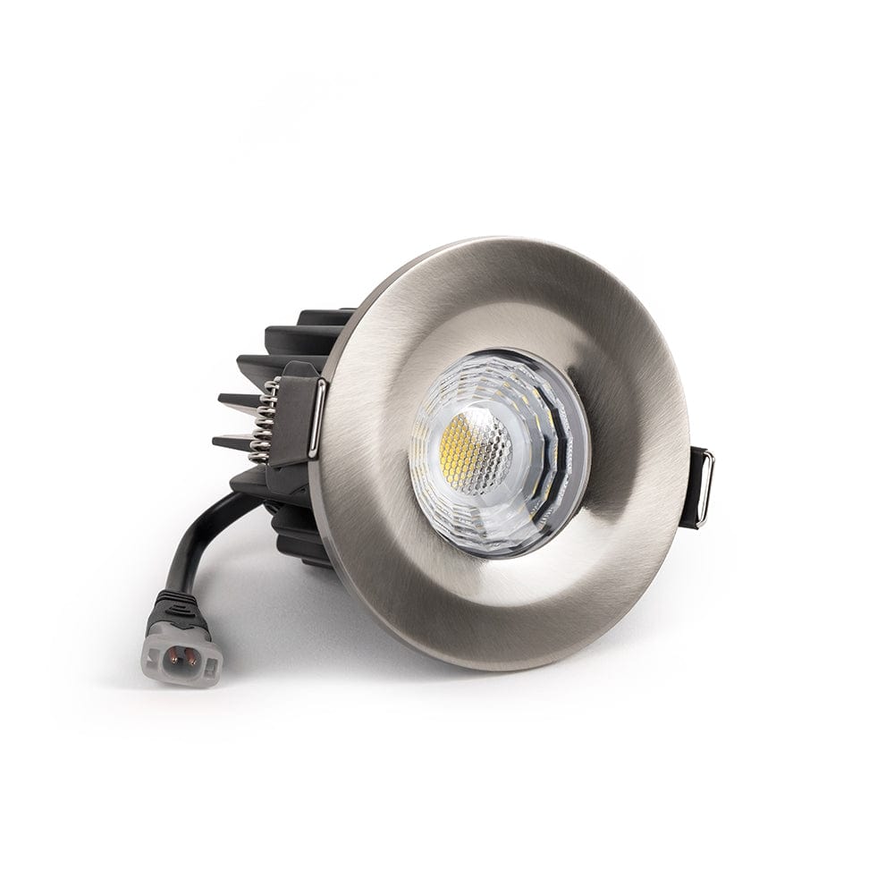 This fixed brushed chrome LED downlight from our collection of beautiful dimmable fire rated downlights has a front-facing CCT easy switch (Changing Colour Temperature) for easy access which enables you to quickly change between 3000K (warm white), 4000K (daylight white) and 6000K (cool white).
