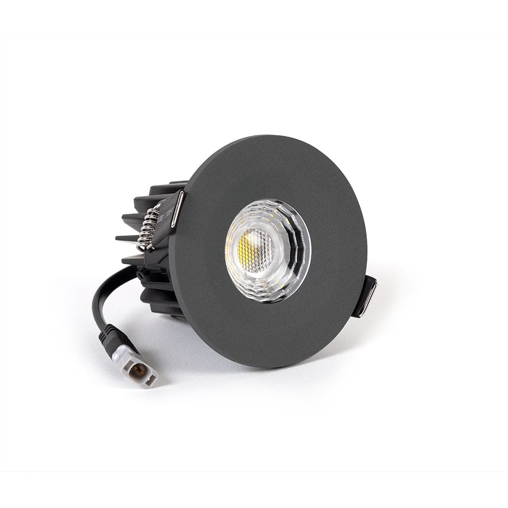This fixed graphite grey LED downlight from our collection of beautiful dimmable fire rated downlights has a front-facing CCT easy switch (Changing Colour Temperature) for easy access which enables you to quickly change between 3000K (warm white), 4000K (daylight white) and 6000K (cool white).