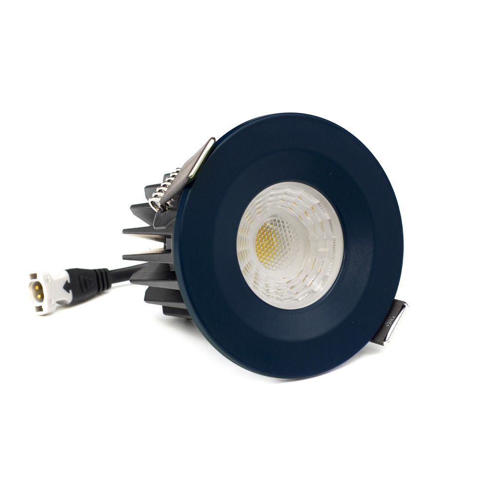 This fixed Navy Blue LED downlight from our collection of beautiful dimmable fire rated downlights has a front-facing CCT easy switch (Changing Colour Temperature) for easy access which enables you to quickly change between 3000K (warm white), 4000K (daylight white) and 6000K (cool white).