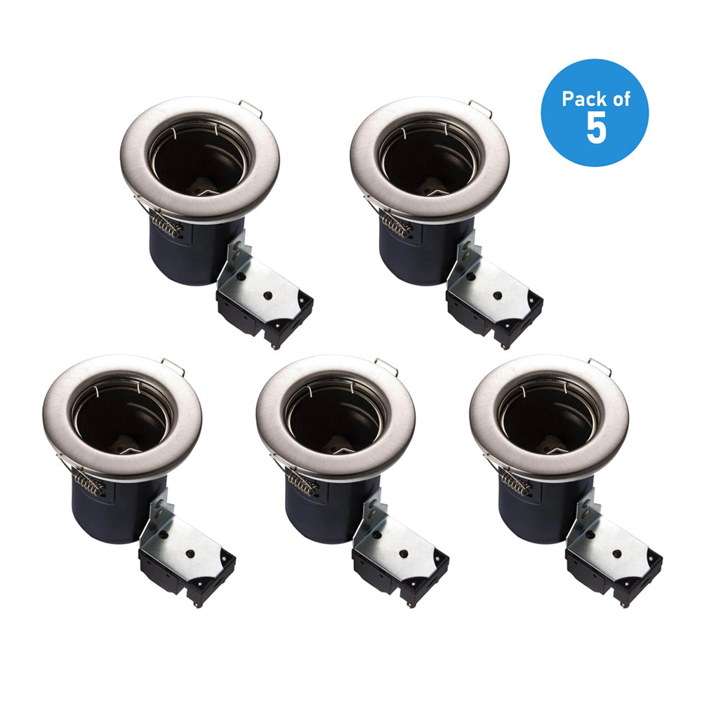 Pack of 5 Units - GU10 Downlight Fitting Fire Rated for Recessed Mounting Chrome Bezel
