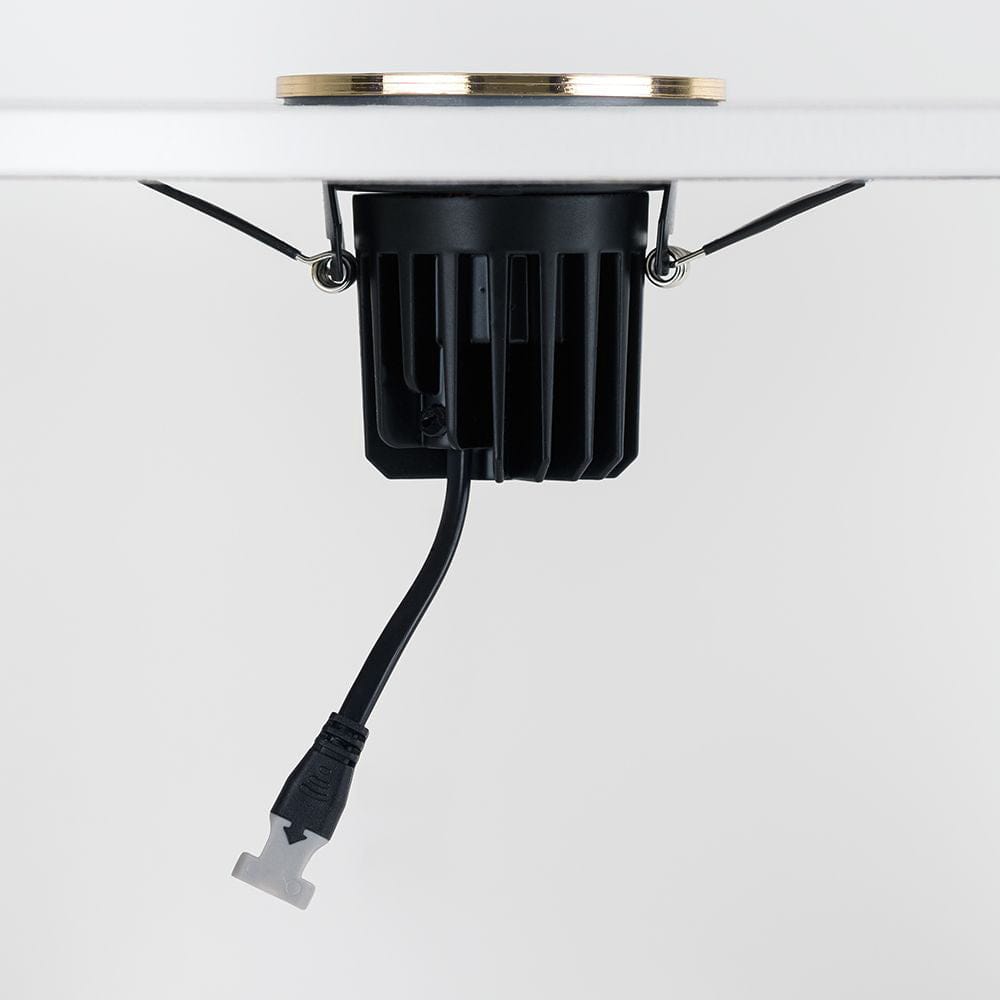 This LED downlight comes with a polished brass bezel and a simple twist and lock installation.