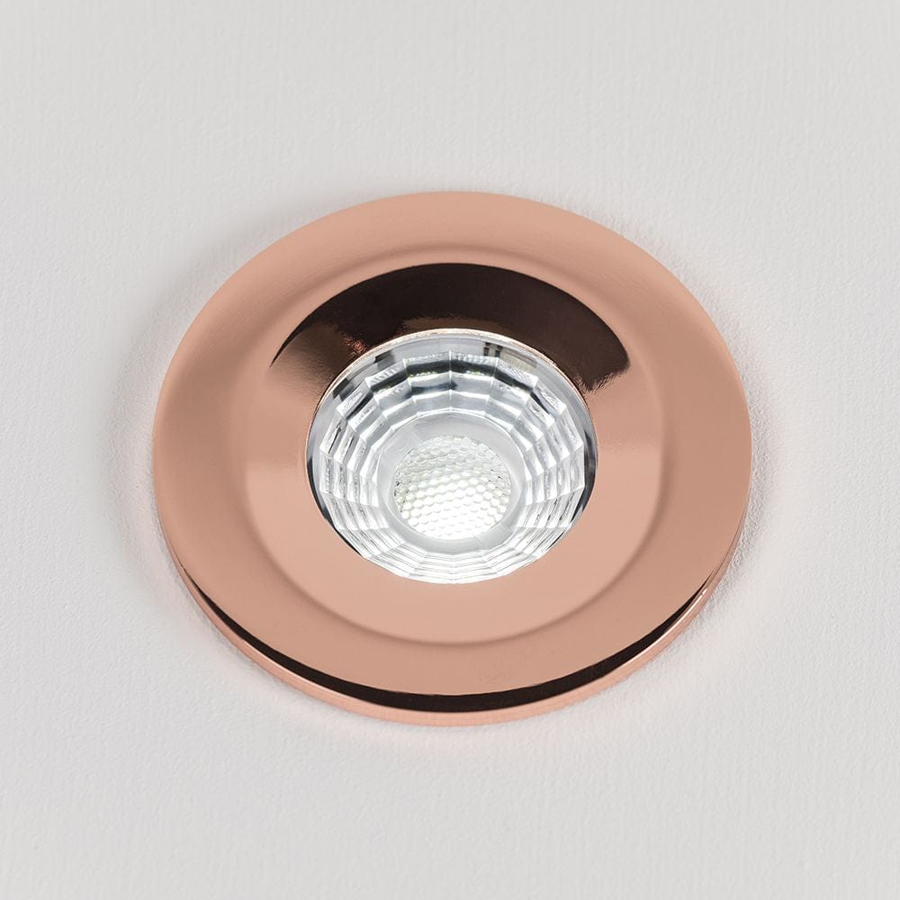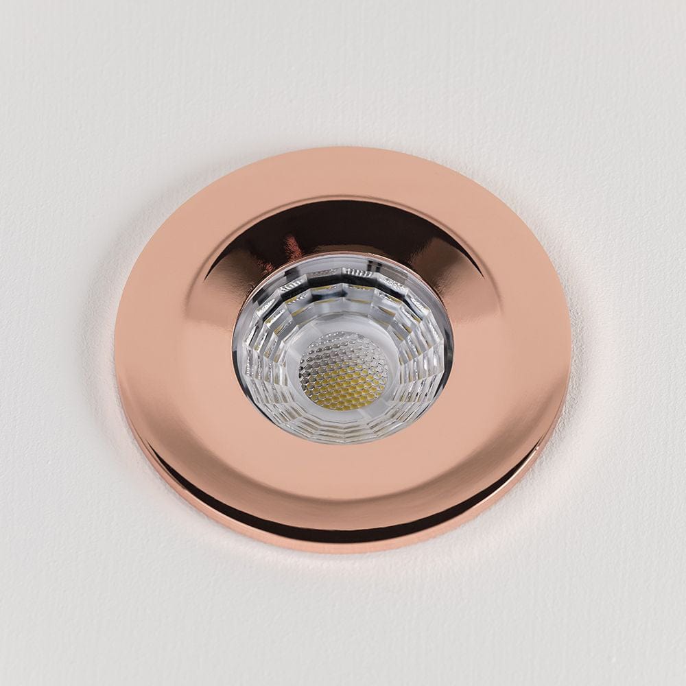 This fixed polished copper LED downlight from our collection of beautiful dimmable fire rated downlights has a front-facing CCT easy switch (Changing Colour Temperature) for easy access which enables you to quickly change between 3000K (warm white), 4000K (daylight white) and 6000K (cool white).