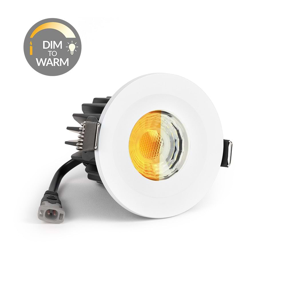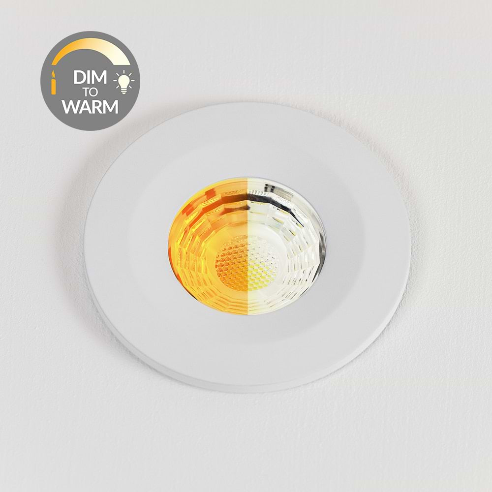 Please note that this downlight does not dim in the traditional sense, but instead changes colour temperature and tone between 1800K (sunset white) and 3000k (warm white) using a dimmer switch. However, the lumen output of the light is lower when operating at 1800K.